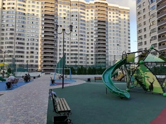 Дом готов, ведутся заключительные работы по благоустройству территории, перед домом шикарный стилобат с детскими и спортивными площадками, беседки для отдыха и парковочными местами для авто. На территории оборудованы мангальные зоны, видеонаблюдение, Wi-Fi во дворе.
