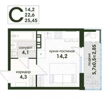 Продается Студия новостройка, 25.45 кв.м., 4/4 эт