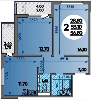 Продается 2-х комн. новостройка, 56.8 кв.м., 9/18 эт