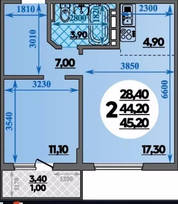 Продается 2-х комн. новостройка, 45.2 кв.м., 18/18 эт