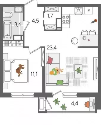 Продается однокомнатная новостройка, 48.7 кв.м., 19/24 эт