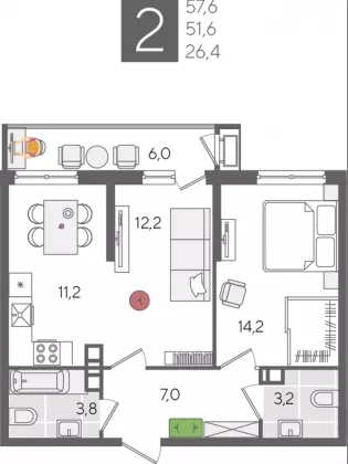 Продается 2-х комн. новостройка, 57.6 кв.м., 16/24 эт