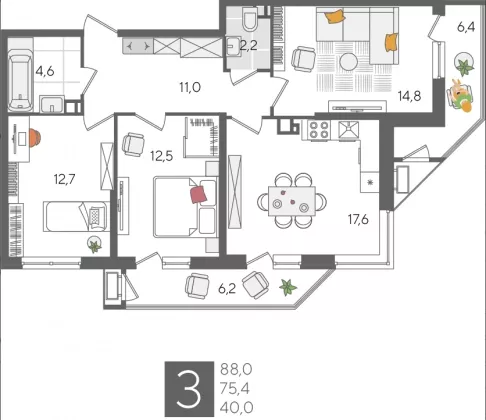 | Площадь, кв.м. | 88.1 |