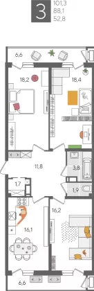 Продается 3-х комн. новостройка, 101.3 кв.м., 19/24 эт