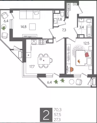 | Площадь, кв.м. | 70.3 |