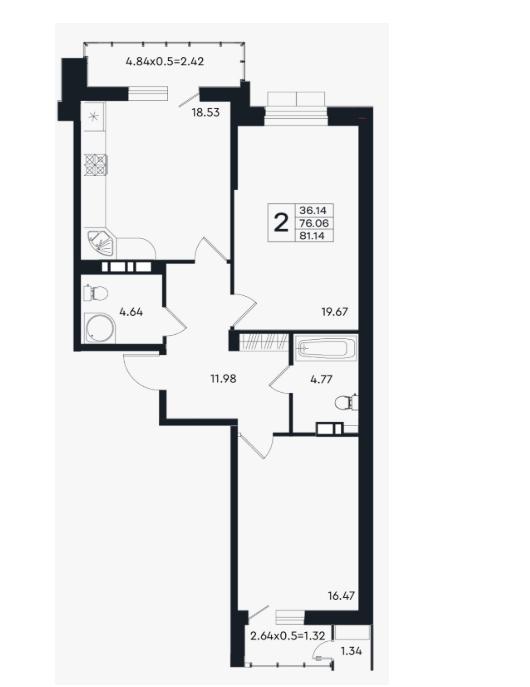 Продается 2-х комн. новостройка, 81.14 кв.м., 9/10 эт