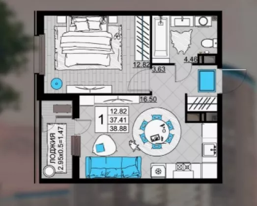 Продается однокомнатная новостройка, 38.88 кв.м., 8/24 эт