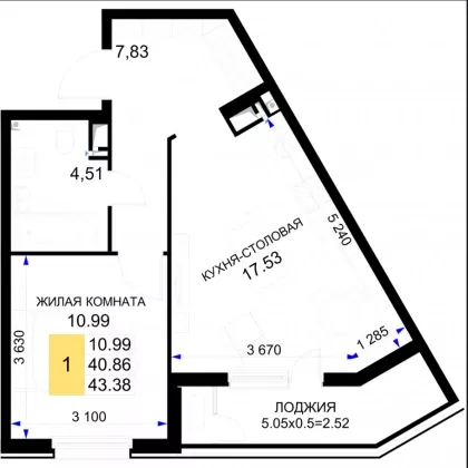 Продается однокомнатная новостройка, 43.38 кв.м., 14/24 эт