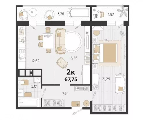 | Комнат в квартире | 2 |