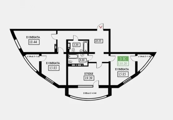 | Комнат в квартире | 3 |
