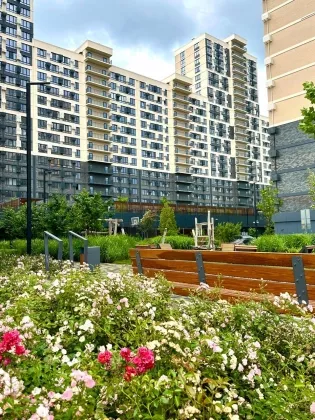 На территории детский сад, школа, свой парк, на первом этаже магазины, кофейни, аптеки, супермаркеты , пункты выдачи товаров, развивающие кружки и секции для детей.Рядом с домом современный Дрим парк, с ресторанами, кафе, зонами отдыха и фонтанами.