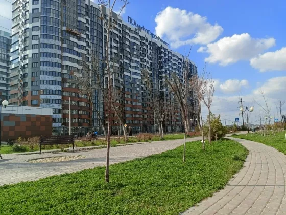 Современный дом, красивая входная группа, Придомовая территория продумана до мелочей, широкий двор с большим количеством парковочных мест, красочные детские площадки. Рядом новая школа, большой торговый центр и в ген. плане детский сад. Вся инфраструктура в шаговой доступности, множество продуктовых магазинов, салонов, аптек, пекарня, кофейня, центр здоровья и все что нужно для жизни. Возле дома проходит зеленая аллея с поющим фонтаном, прекрасное место для отдыха. Район очень перспективный, хорошая транспортная развязка. По всем вопросам звоните Анна