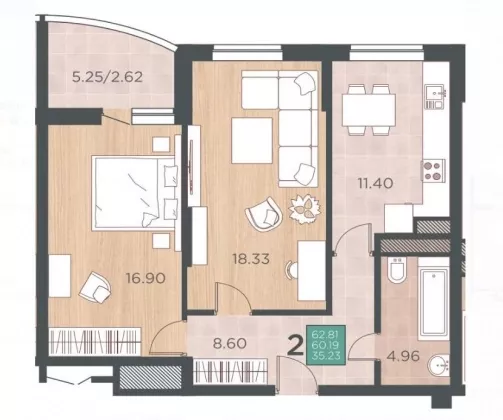 Продается 2-х комн. новостройка, 62.8 кв.м., 12/17 эт
