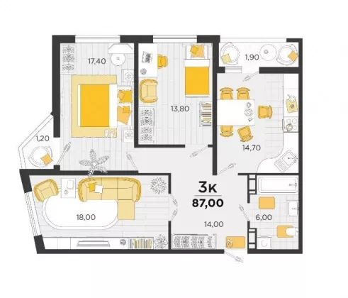 Продается 3-х комн. новостройка, 87 кв.м., 14/24 эт