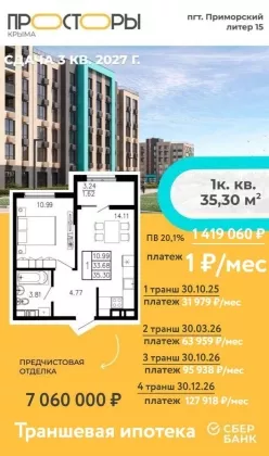 Цена указанна с условием покупки по программе траншевая ипотека.