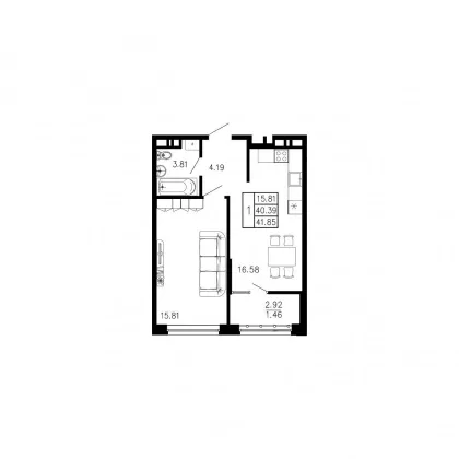 Продается однокомнатная новостройка, 41.85 кв.м., 3/6 эт