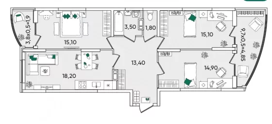 Просторная квартира для большой семьи! Кухня-гостиная 18кв.м., гардеробные, две лоджии с потрясающим видом на город которые можно оборудовать под кабинет или зону отдыха! В квартире качественная отделка, система умный дом, консьерж, для питомцев лапомойки. Во дворе детские и спортивные площадки, зоны отдыха для взрослых и детей с мангальными зонами и беседками, паркинг. В микрорайоне прогулочные аллеи с фонтанами и зонами отдыха, велодорожки.