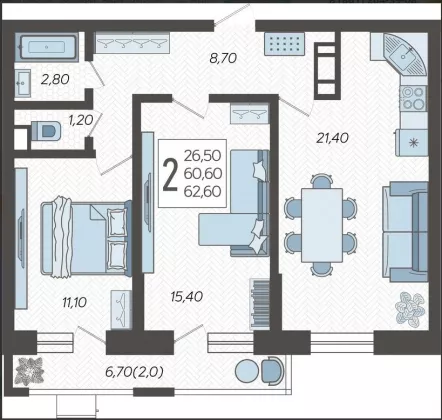 | Площадь, кв.м. | 62.6 |