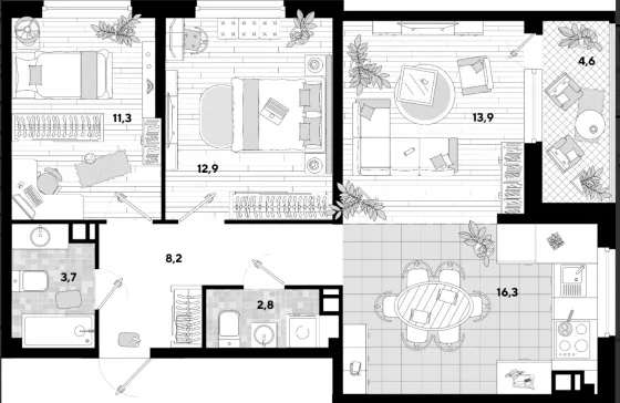 Эксклюзивная планировка, кухня -столовая с выходом на лоджию с панорамным остеклением, два санузла, место под гардероб, в квартире выполнена предчистовая отделка, радиаторы отопления, приборы учета, панорамное остекление балкона и лоджий. Возможно купить квартиру с ремонтом! Льготная ипотека от 0,1% на весь срок без первоначального взноса! Звоните, показ объекта, наш ипотечный специалист откроет ипотеку на выгодных условиях дистанционно! Менеджер :Юлиана