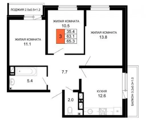 Продается 3-х комн. новостройка, 65.3 кв.м., 11/16 эт