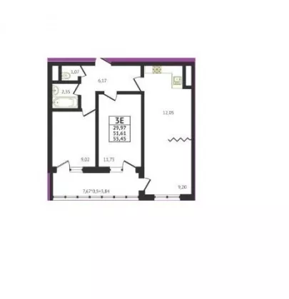Продается 3-х комн. новостройка, 55.54 кв.м., 8/17 эт