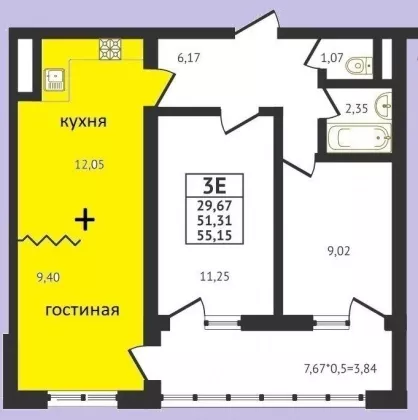 Продается 3-х комн. новостройка, 55.54 кв.м., 7/17 эт