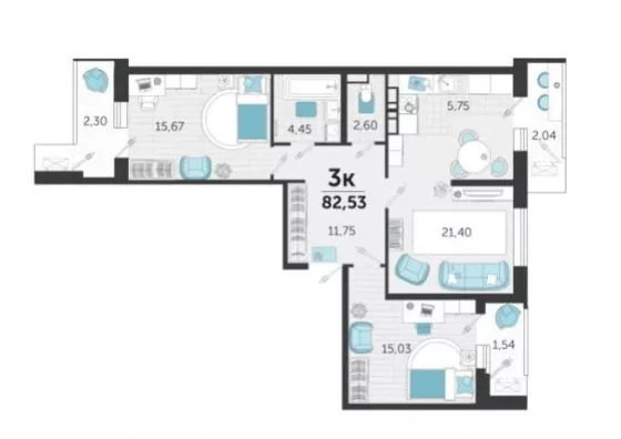 Продается 3-х комн. новостройка, 82.5 кв.м., 7/24 эт