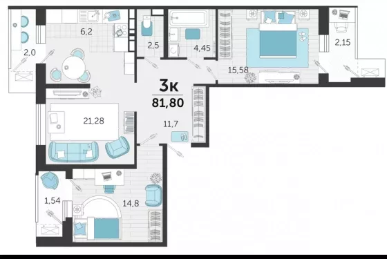 Продается 3-х комн. новостройка, 82.5 кв.м., 11/24 эт