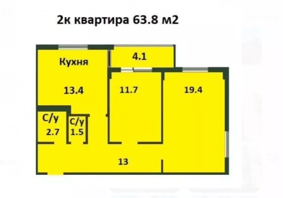 Продается 2-х комн. новостройка, 65 кв.м., 8/9 эт