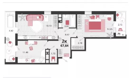 Продается 2-х комн. новостройка, 67.64 кв.м., 14/18 эт