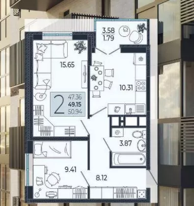 Продается 2-х комн. новостройка, 50.94 кв.м., 18/21 эт