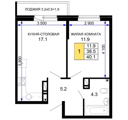 | Площадь, кв.м. | 40.1 |