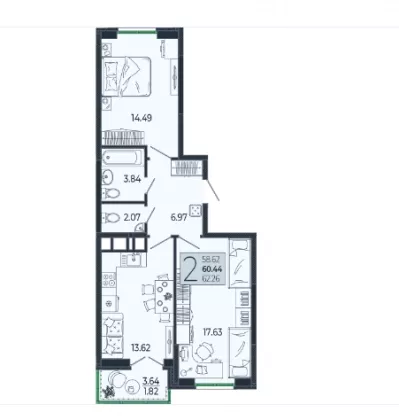 Продается 2-х комн. новостройка, 62.26 кв.м., 14/21 эт