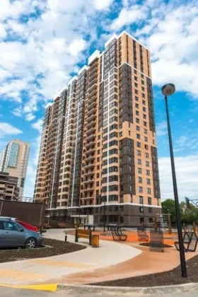 На территория жилого комплекса паркинг, детские и спортивные площадки, зоны отдыха для взрослых, видеонаблюдение. Развитый район со своей инфраструктурой: рядом с домом фитнес клуб, школа, несколько детских садов, магазины, поликлиника, прогулочные аллеи с фонтаном, остановка общественного транспорта, в 15 мин знаменитый парк Галицкого.