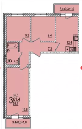 Продается 3-х комн. новостройка, 60 кв.м., 2/5 эт
