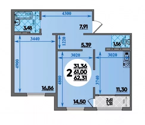 Продается 2-х комн. новостройка, 62.31 кв.м., 7/16 эт