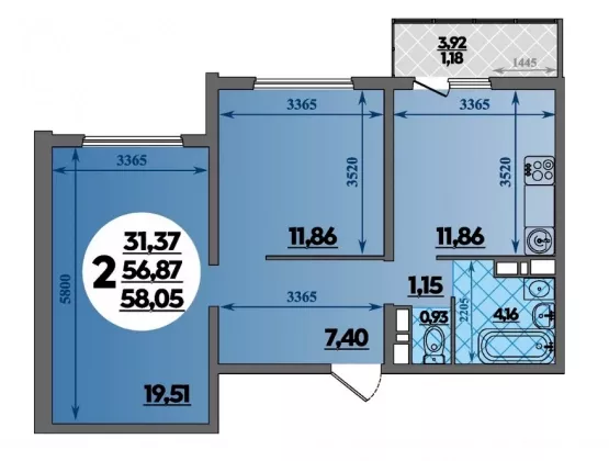 | Площадь, кв.м. | 58.05 |