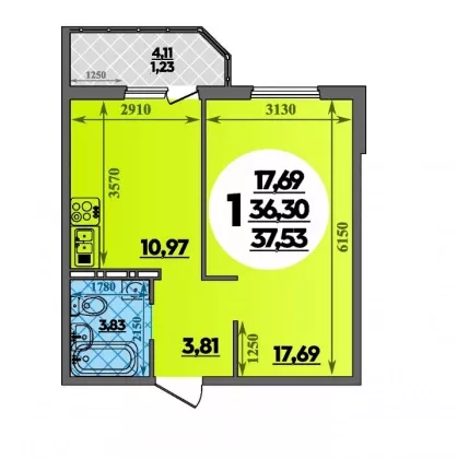 Продается однокомнатная новостройка, 37.53 кв.м., 10/16 эт