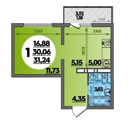 Продается однокомнатная новостройка, 31.24 кв.м., 7/16 эт