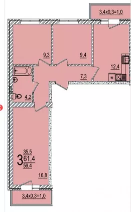 Продается 3-х комн. новостройка, 61.4 кв.м., 1/5 эт