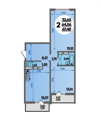 Продается 2-х комн. новостройка, 67.48 кв.м., 10/16 эт