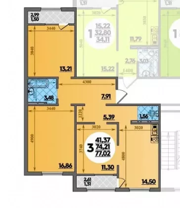 | Площадь, кв.м. | 77.02 |