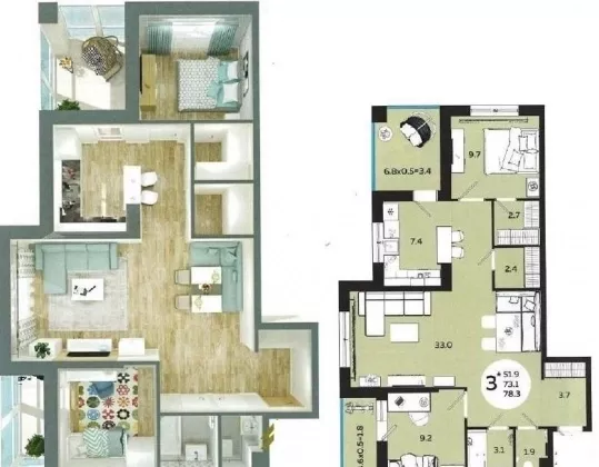 Продается 3-х комн. новостройка, 78.3 кв.м., 9/24 эт