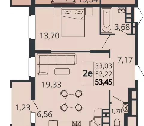 Продается 2-х комн. новостройка, 53.45 кв.м., 4/9 эт