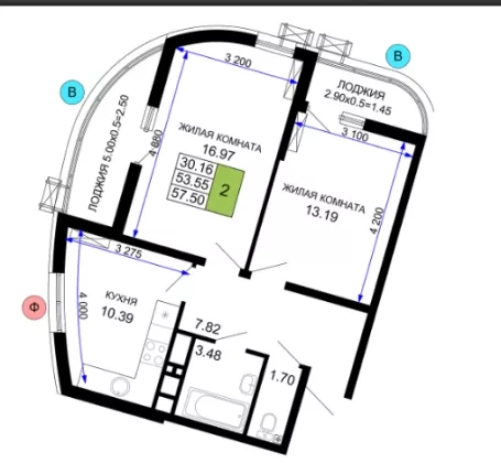 Продается 2-х комн. новостройка, 57.5 кв.м., 9/24 эт