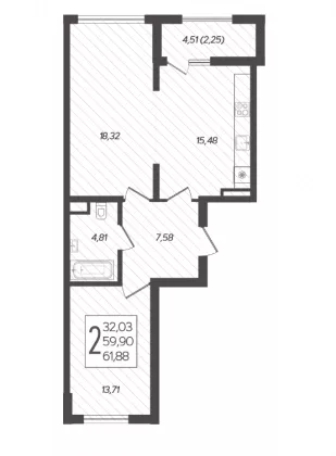 Продается 2-х комн. новостройка, 62 кв.м., 5/19 эт