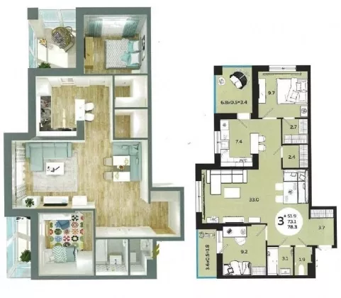 Продается 3-х комн. новостройка, 78.3 кв.м., 7/24 эт