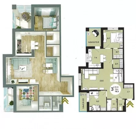 Продается 3-х комн. новостройка, 78.3 кв.м., 6/24 эт