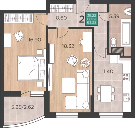 Продается 2-х комн. новостройка, 64 кв.м., 8/19 эт