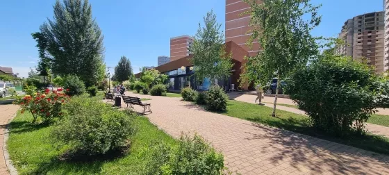 Рядом есть все. Школа и дет сад. Транспортная развязка и большие магазины. Рядом с домом красивый храм, украшение всего района.